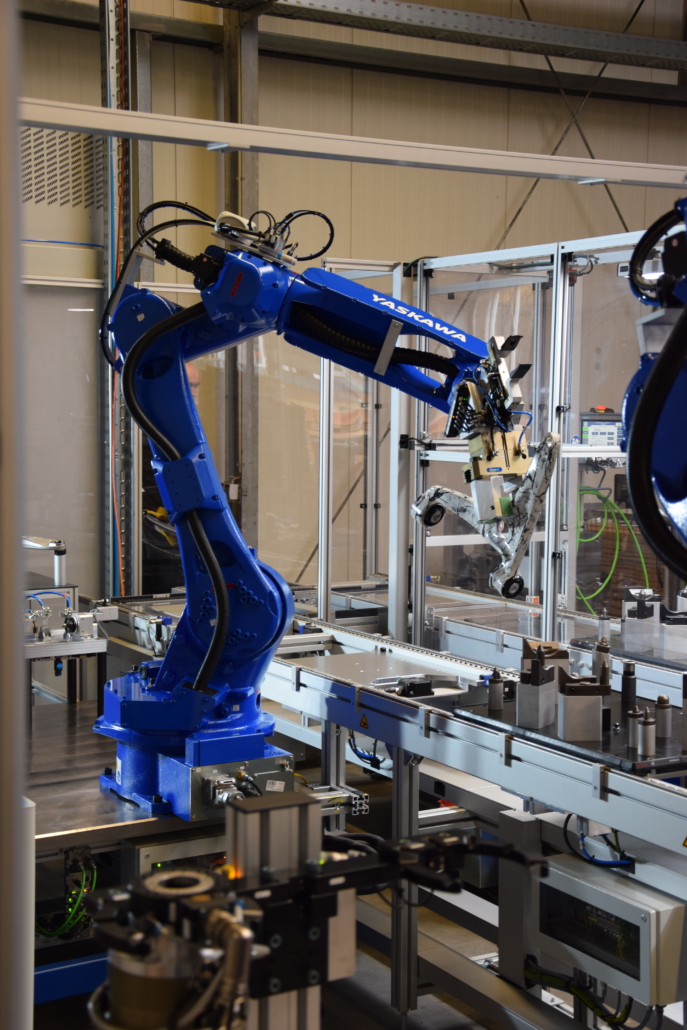 Unterschiedlichste Prozessschritte können so flexibel und automatisiert verbunden werden. Ebenso realisieren wir für vollautomatisierte Lösungen Bauteilzuführungen und das Abstapeln des fertigen Produktes. Realisierte Lösungen finden Sie in der Rubrik Referenzen.